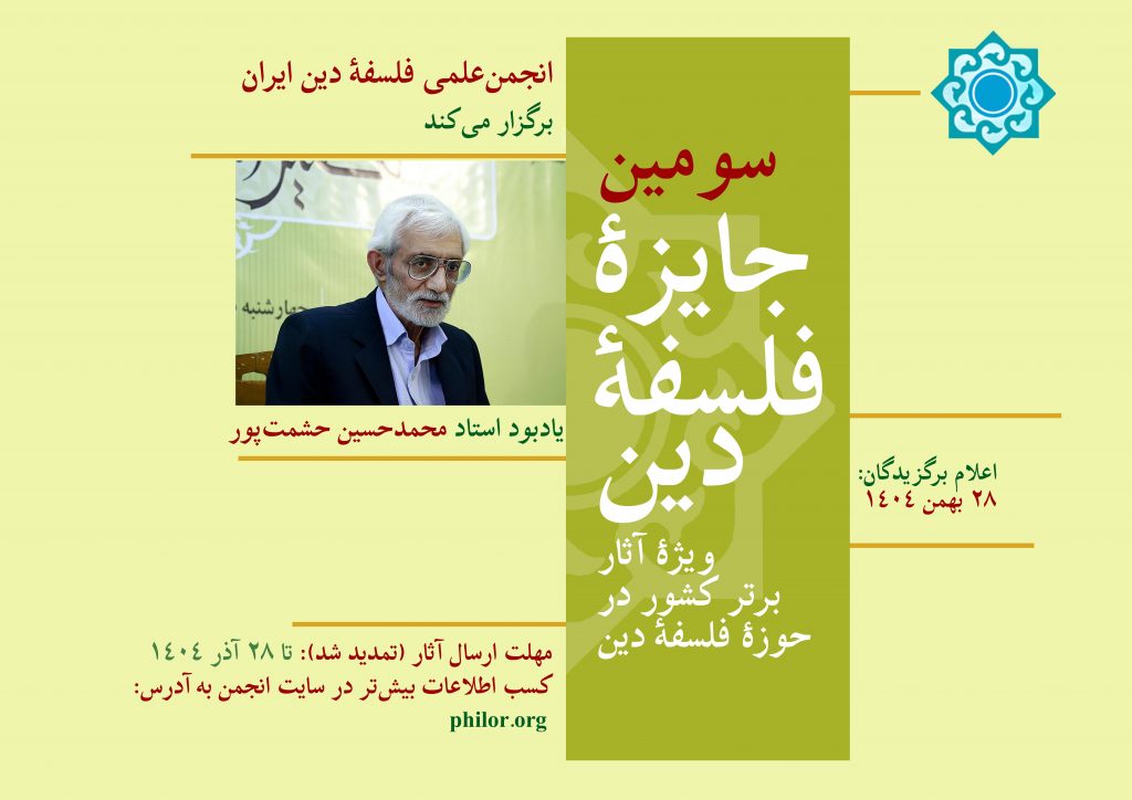 همچنین به اطلاع میرساند انجمنعلمی فلسفۀ دین ایران مفتخر است استادان زیر را بهعنوان اعضای شورای علمی در برگزاری سومین جایزۀ فلسفۀ دین در کنار خویش داشته باشد.